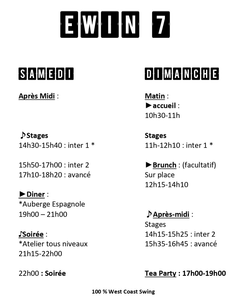 Les Horaires de l’EWIN 7